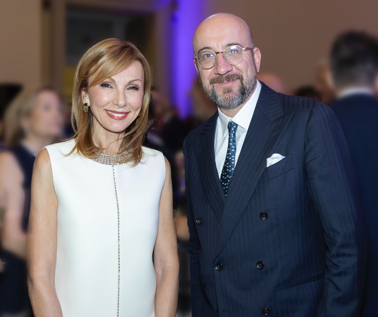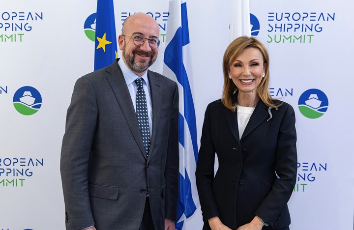 Η Πρόεδρος της Ένωσης Ελλήνων Εφοπλιστών, Μελίνα Τραυλού και ο Επίτιμος Πρόεδρος του Ευρωπαϊκού Συμβουλίου (2019-2024), πρώην Πρωθυπουργός του Βελγίου (2014-2019), πρώην Υπουργός του Κράτους του Βελγίου, Charles Michel.