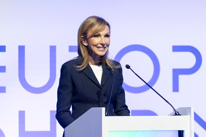 Η Πρόεδρος της Ένωσης Ελλήνων Εφοπλιστών, Μελίνα Τραυλού κατά τη διάρκεια της ομιλίας της στην εκδήλωση της Ένωσης Ελλήνων Εφοπλιστών με τίτλο «Shipping anchors the EU’s Future», στο πλαίσιο της Ευρωπαϊκής Διάσκεψης στις Βρυξέλλες για τη Ναυτιλία “European Shipping Summit 2025”