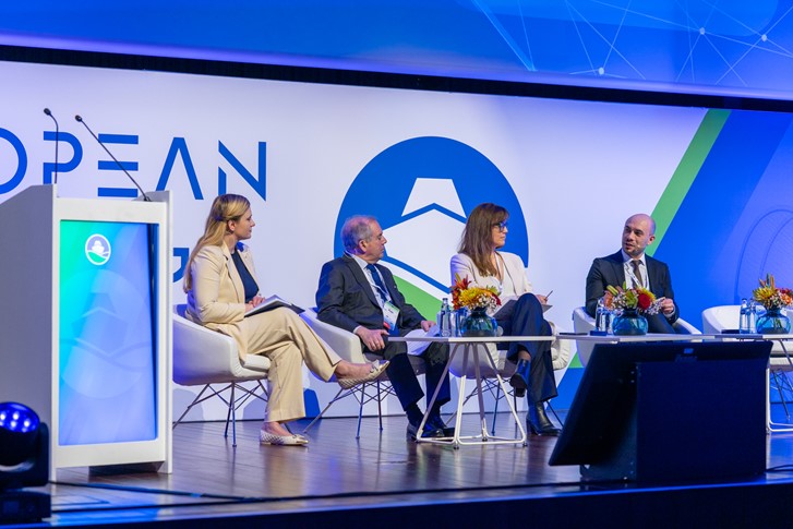 (από τα αριστερά προς τα δεξιά) Η Kait Bolongaro, Managing Editor, Europe, MLex, συντόνισε τη συζήτηση στην εκδήλωση της Ένωσης Ελλήνων Εφοπλιστών με τίτλο «Shipping anchors the EU’s Future», ο Γραμματέας της ΕΕΕ, Δημήτρης Φαφαλιός, η Head of Unit for Mobility, DG CLIMA της Ευρωπαϊκής Επιτροπής, η Polona Gregorin, ο Shipping Director του Transport & Environment, Faig Abbasov.