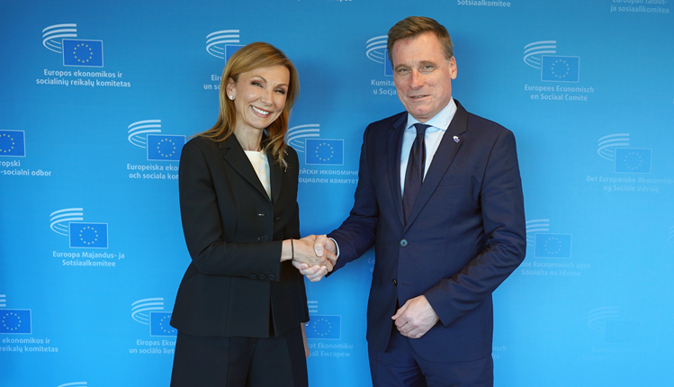 Η Πρόεδρος της Ένωσης Ελλήνων Εφοπλιστών, Μελίνα Τραυλού με τον Oliver Röpke, Πρόεδρο της Ευρωπαϊκής Οικονομικής και Κοινωνικής Επιτροπής.